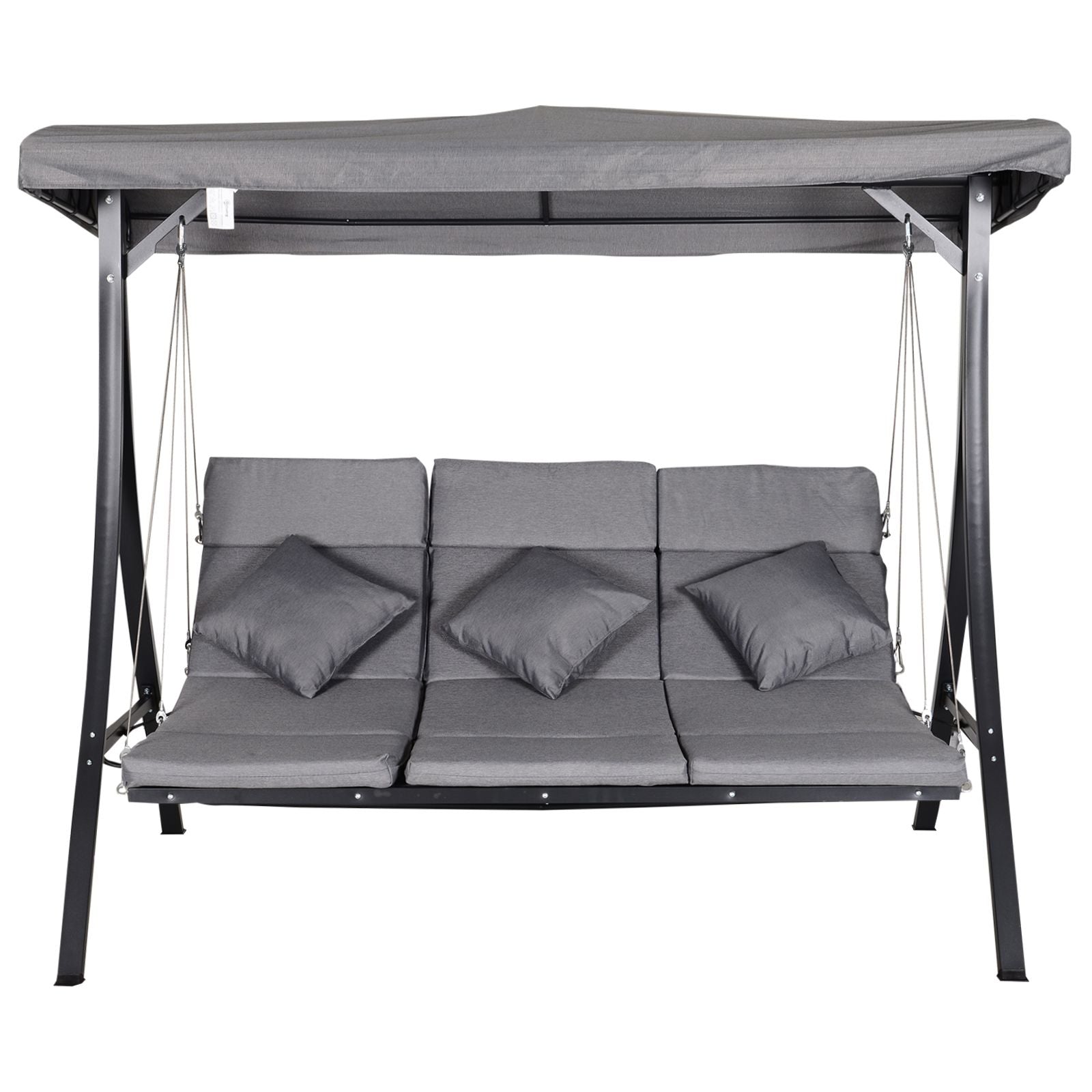Zoekt u een rustige plek om te ontspannen in de tuin, samen met uw familie en vrienden? Hier is hij! Deze driezitsschommel is perfect om uw buitenruimtes te decoreren! Het unieke ontwerp wordt gekenmerkt door het C-vormige dak en de lange kussens voor extra comfort. Hij is gemaakt van duurzame en waterdichte materialen, zoals metaal en polyester, voor een robuust en duurzaam product. Kenmerken: · Driezitsschommel, perfect voor buitenomgevingen zoals de tuin, het terras of de binnenplaats. · De zitkussens zijn extra zacht en bekleed met polyester. · Inclusief 3 decoratieve kussens. · Stevig gepoedercoat stalen frame met een draagvermogen tot 270 kg. · Waterdicht en uv-bestendig polyester doek. · U kunt de hoek van het doek naar wens aanpassen. · De 4 poten zijn voorzien van een anti-slip coating.
