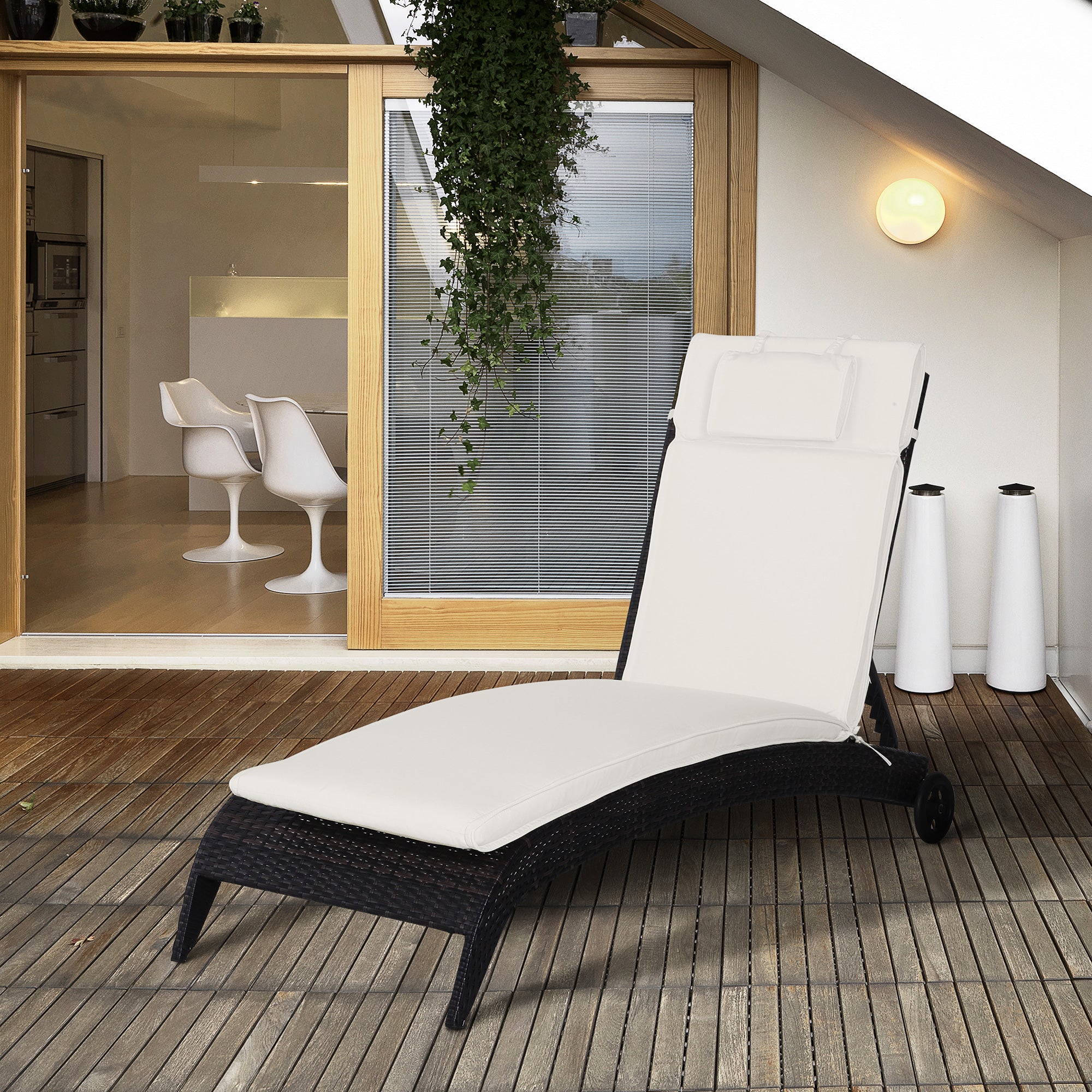 Deze kussenhoes voor een ligstoel is perfect voor de meeste tuinstoelen. Water- en zonbestendig, ideaal voor buitengebruik. De dikke vulling van het kussen zorgt voor maximaal comfort. Dankzij de koorden is de hoes eenvoudig en effectief te bevestigen. De polyester kussenhoes heeft een rits, dus gemakkelijk te wassen. Kenmerken Polyester hoes Extra vulling Afneembare kussenhoes Trekkoord voor eenvoudige bevestiging Ideaal voor buiten Technische gegevens Kleur: crèmewit Materiaal: polyester Nettogewicht: 2 kg Totale afmetingen: 198 B x 53 D x 5 A cm Afmetingen kussen: 20 × 30 cm Ruglengte: 55 cm Lengte stoel: 122 cm, gewicht: 17,0 kg Kostenpeditie ecad: IT15 AD113 AT73 BE75 BG88 HR89 DK125 EE122 FR94 LV94 LT88 NL68 PT82 SK73 SI74 ES75 SE74 SE135 CH5 135 EasyCommodello 84B-30W