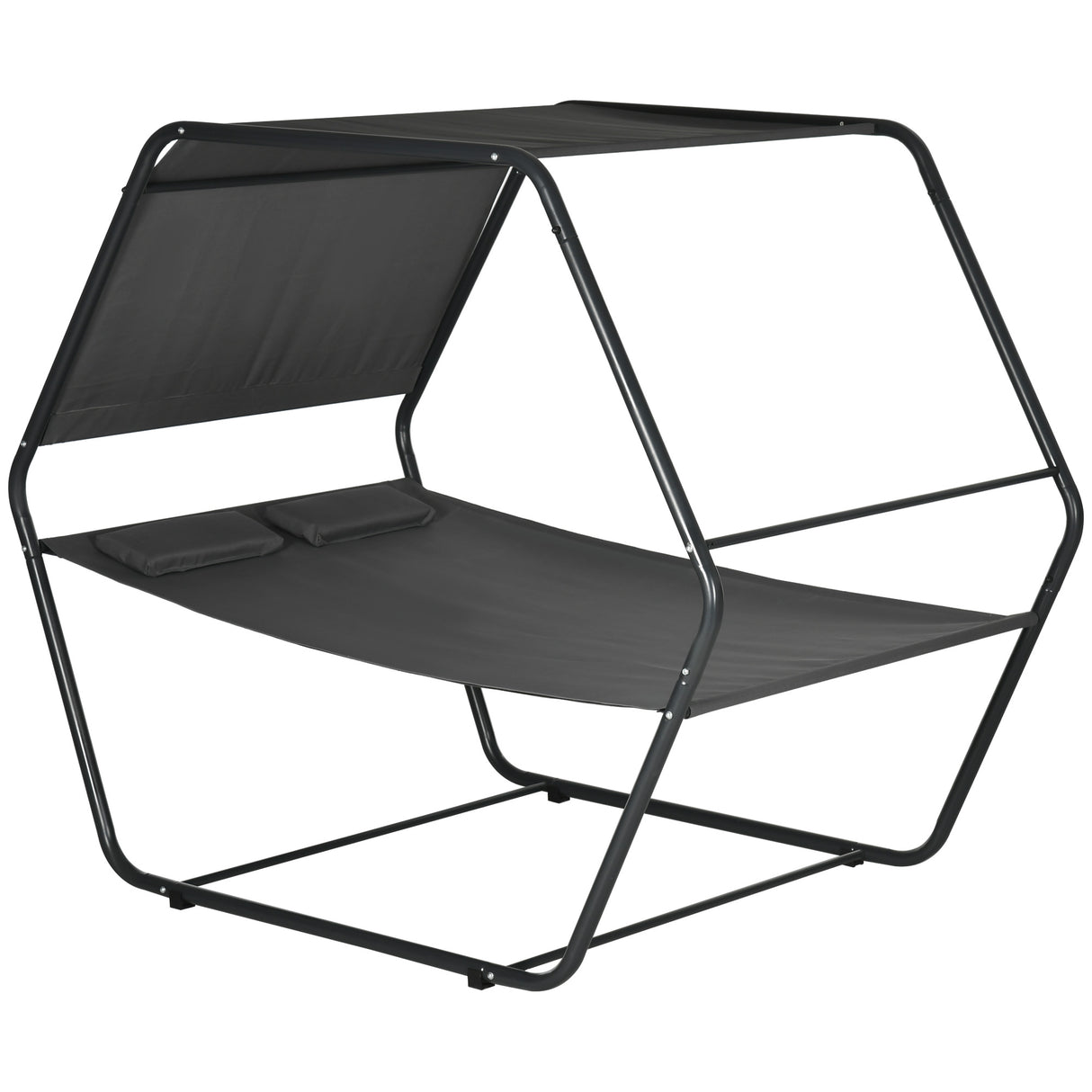 EASYCOMFORT Ligstoel met 2 zitplaatsen, staal, met kussen en zonnescherm, 210x140x177 cm, grijs