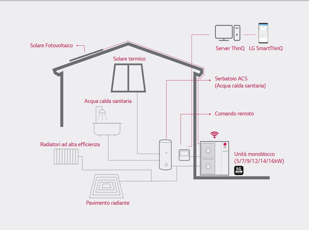 Mini Chiller Inverter Warmtepomp LG Therma V Monobloc 7 kW HM071MR.U44 Enkele Fase R-32